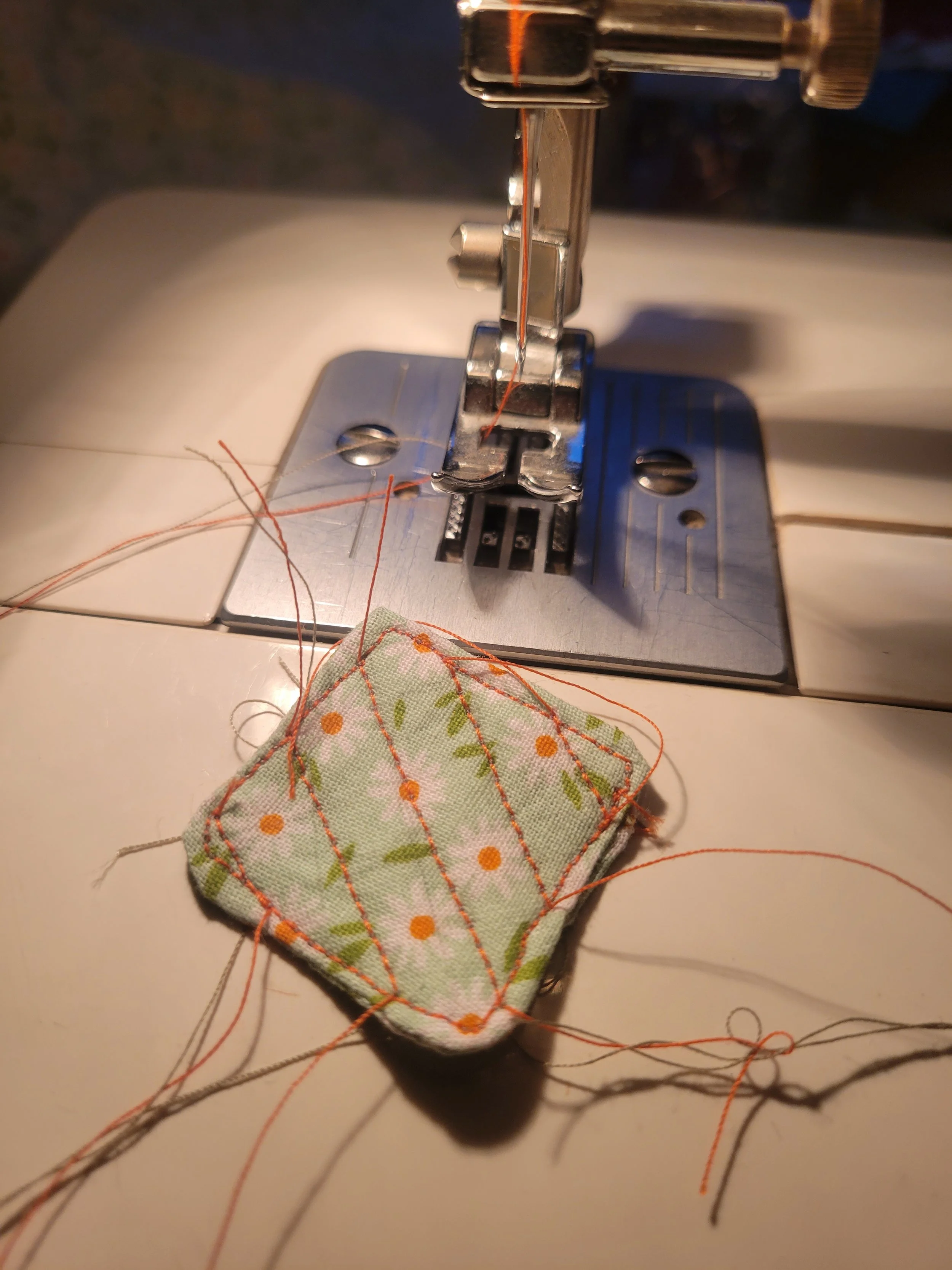 Sewing a miniature hot pad. I need a smaller sewing machine.