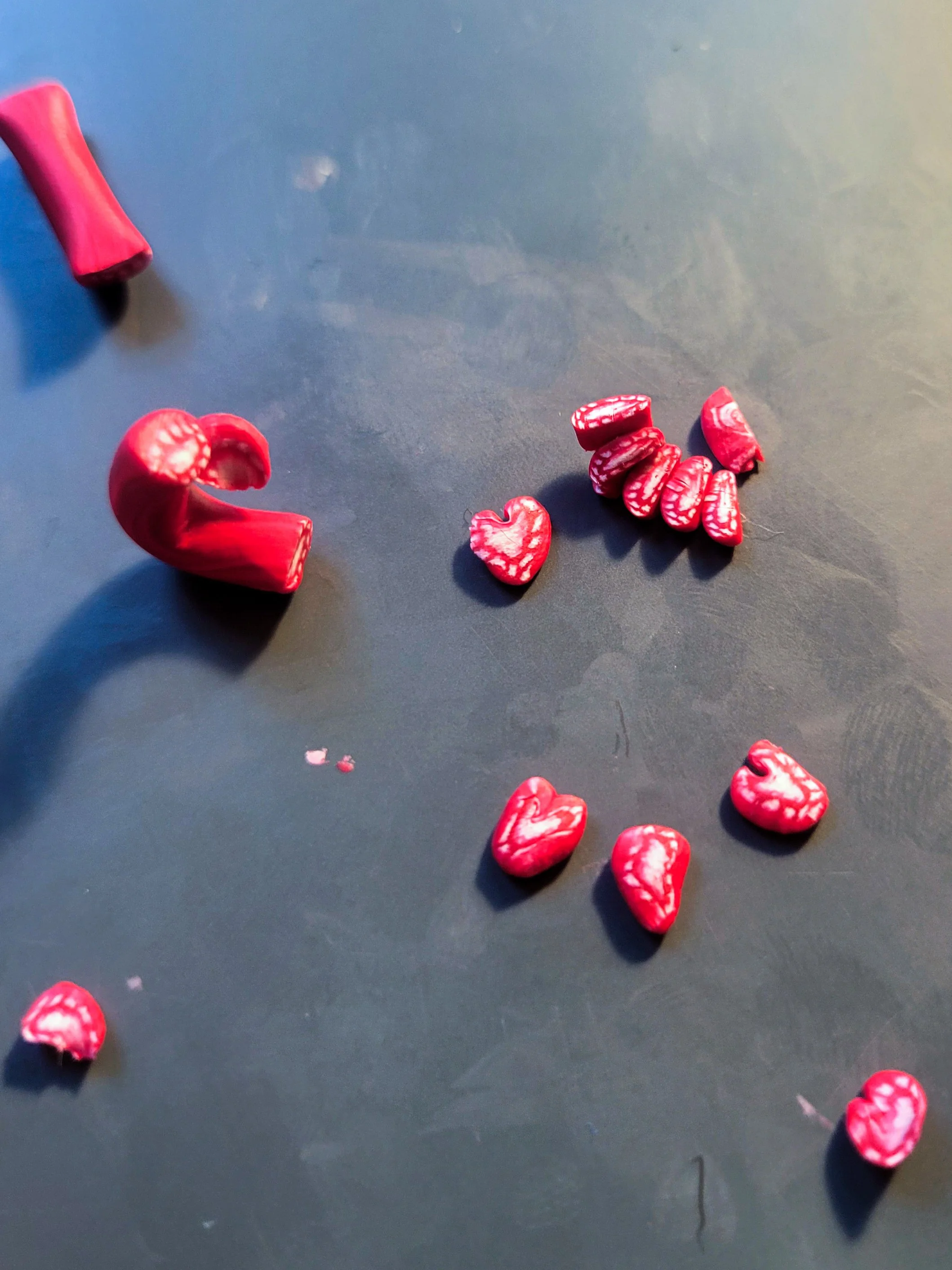 I made a clay cane of strawberries and then cut the individual slices.